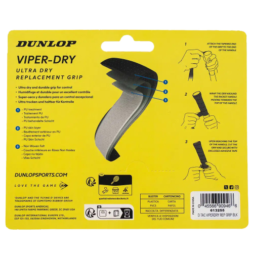 Tenis omotávky DUNLOP ATP VIPER-DRY Grip 1,8 mm černá
